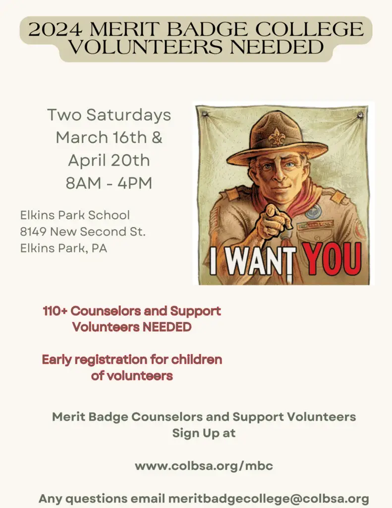 See below to see what Merit Badge (MB) opportunities await your Scouts BSA or Venturing members. From our Council sponsored College, to district level Colleges or expos there is sure to be an opportunity that works for you.